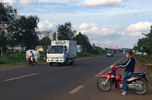 Dù mang theo mũ bảo hiểm nhưng một thanh niên ở xã Cuôr Đăng huyện Cư M’gar vẫn đầu trần khi tham gia giao thông còn mũ bảo hiểm thì treo trên xe