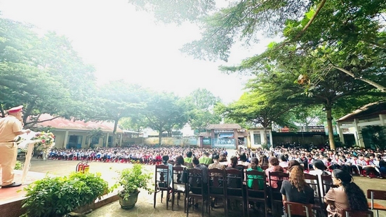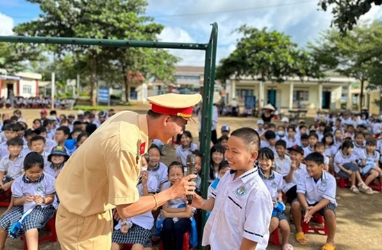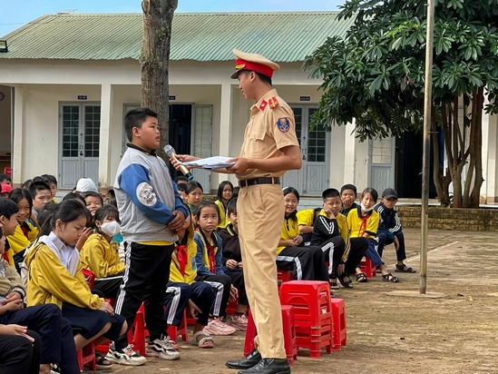 Cán bộ Đội CSGT tổ chức các buổi tuyên truyền cho học sinh về Luật giao thông đường bộ