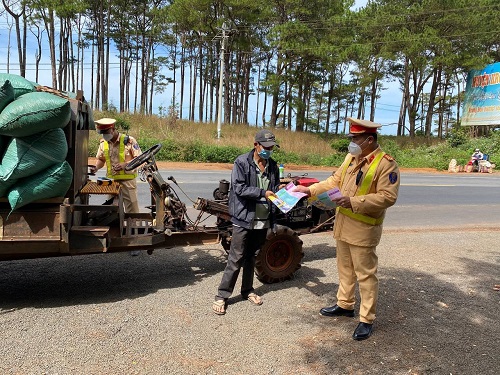Vào tháng cao điểm thu hoạch nông sản, lưu lượng xe công nông, máy kéo lưu thông trên tuyến tăng cao làm cho tình hình trật tự, an toàn giao thông trên tuyến có những diễn biến phức tạp. Trước thực trạng trên, Trạm Cảnh sát giao thông Krông Búk đã chủ động tổ chức phát tờ rơi tuyên truyền trực tiếp bằng 2 ngôn ngữ viết (Kinh và Ê đê) kết hợp dán Decal nhằm nâng cao ý thức của người dân khi tham gia giao thông và góp phần kiềm giảm tai nạn giao thông. Kết quả, từ ngày 4/12 đến ngày 6/12/2021, cán bộ, chiến sỹ Trạm Cảnh sát giao thông Krông Búk vừa thực hiện nhiệm vụ tuần tra, kiểm soát giao thông vừa tuyên truyền nhắc nhở và dán Decal phản quang nhận diện đối với 470 xe công nông, máy kéo, phát trên 1.300 tờ rơi tuyên truyền.