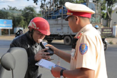 Lực lượng CSGT kiểm tra nồng độ cồn người điều khiển phương tiện