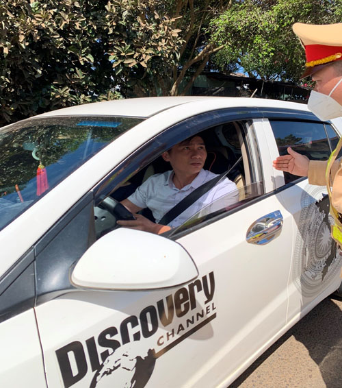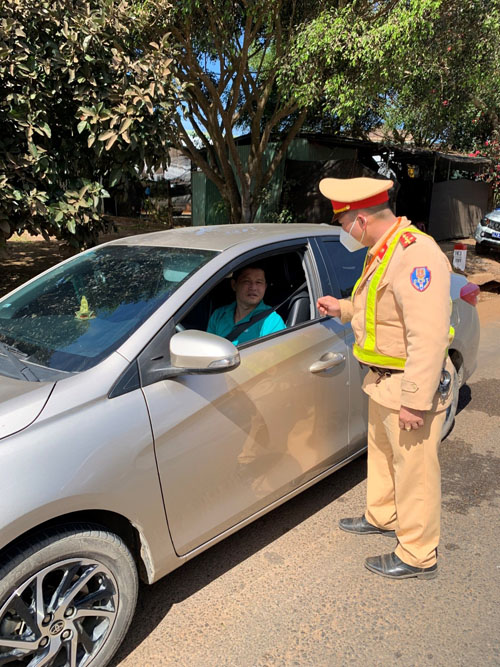 Lực lượng Cảnh sát giao thông kiểm tra kết hợp nhắc nhở người dân thực hiện việc thắt dây an toàn khi ngồi trên xe ô tô tham gia giao thông