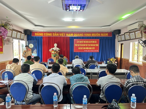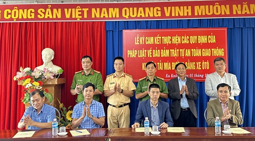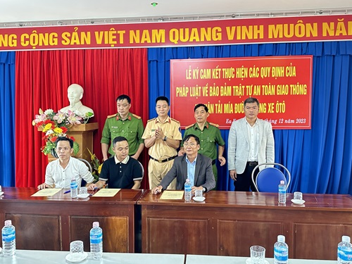 Sáng ngày 01/12/2023, Phòng Cảnh sát giao thông Công an tỉnh Đắk Lắk phối hợp với Công an huyện Ea Kar, huyện M’Đrắk và Công ty mía đường 333 tổ chức tuyên truyền phố biển kiến thức pháp luật ATGT và ký cam kết thực hiện các quy định của pháp luật về bảo đảm trật tự ATGT đối với các đơn vị hoạt động vận tải mía trên tuyến Quốc lộ 26.