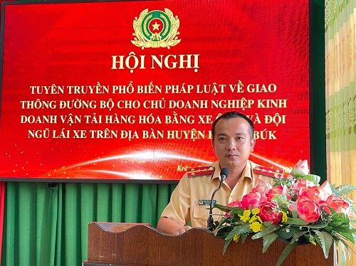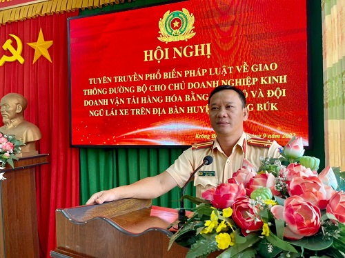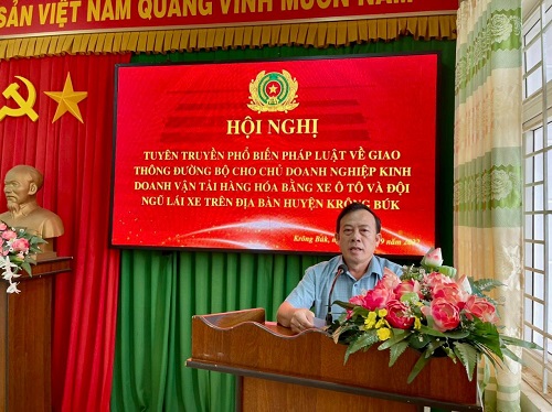 Sáng ngày 17/9/2022, lực lượng Cảnh sát giao thông trật tự Công an huyện Krông Búk đã tổ chức tuyên truyền, phổ biến pháp luật về giao thông đường bộ cho chủ doanh nghiệp và đội ngũ lái xe trên địa bàn huyện.