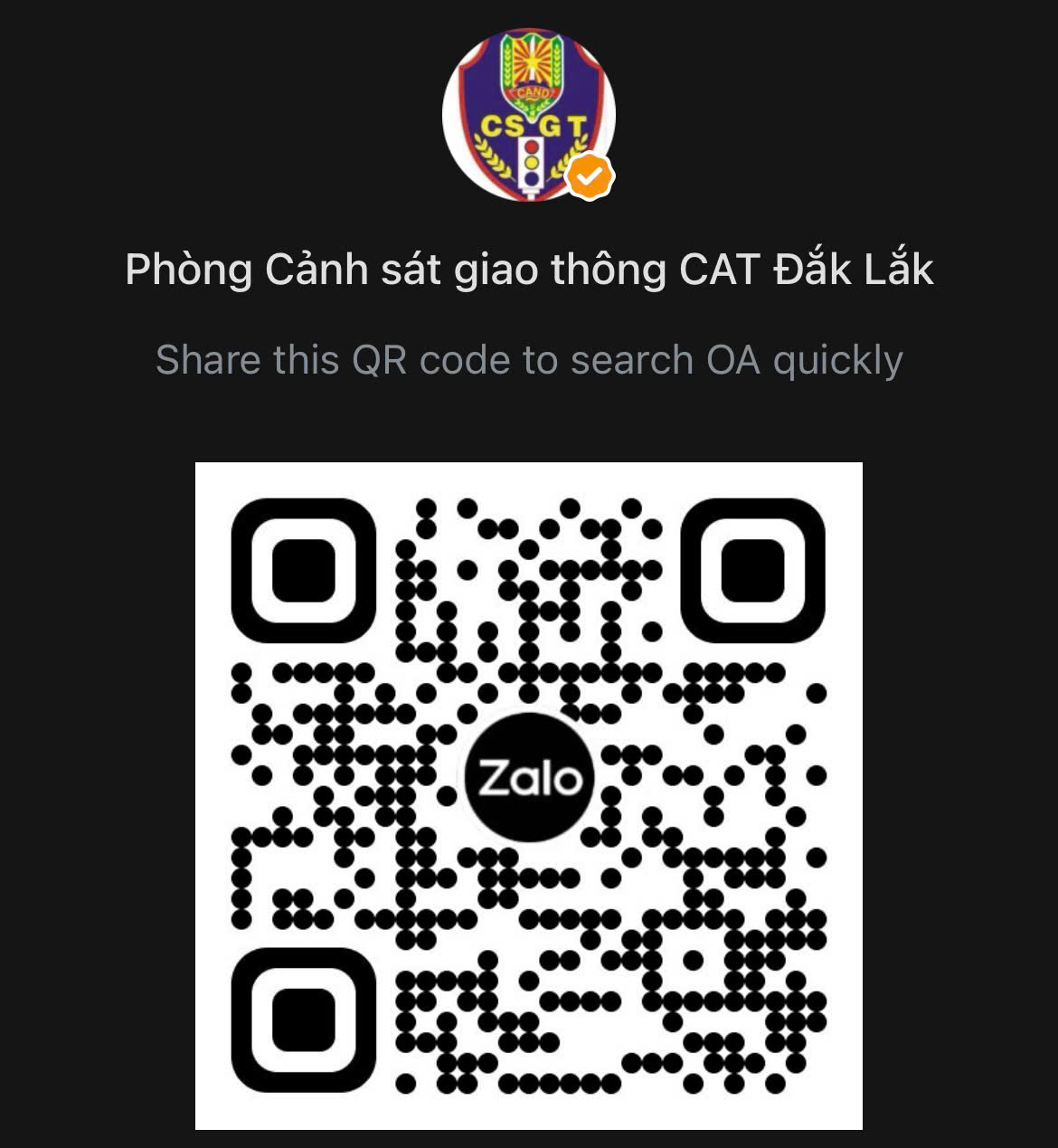 Quét mã QR để quan tâm và theo dõi Trang Zalo Official “Phòng Cảnh sát giao thông CAT Đắk Lắk” (Nguồn: Phòng Cảnh sát giao thông, Công an tỉnh Đắk Lắk)