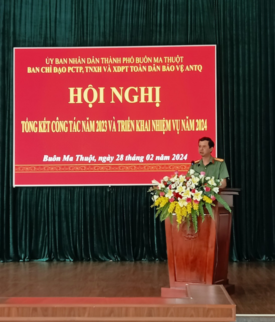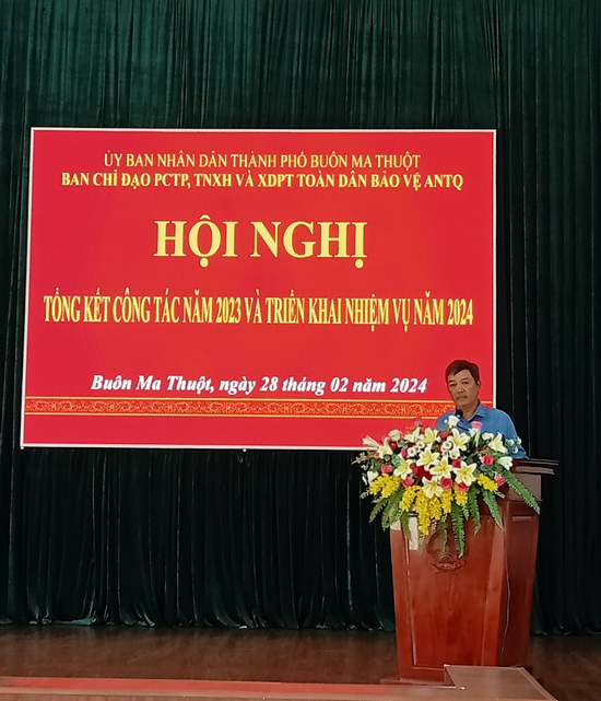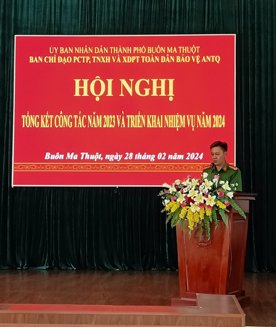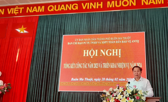 Chiều ngày 28/02/2024, Ban Chỉ đạo phòng, chống tội phạm, tệ nạn xã hội và xây dựng phong trào toàn dân bảo vệ an ninh Tổ quốc thành phố Buôn Ma Thuột (Ban chỉ đạo 138 thành phố Buôn Ma Thuột) tổ chức Hội nghị Tổng kết công tác phòng, chống tội phạm, tệ nạn xã hội (TNXH) và xây dựng phong trào toàn dân bảo vệ an ninh Tổ quốc (ANTQ) năm 2023, triển khai phương hướng, nhiệm vụ năm 2024.