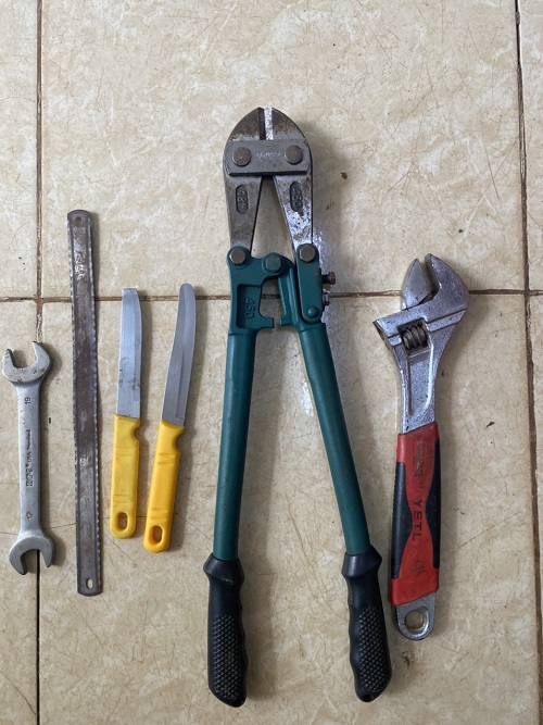 Qua kiểm tra phát hiện trên phương tiện và người của hai đối tượng còn đem theo 01 cây kim cộng lực, 02 con dao thái lan và một số vật dụng khác. Nghi vấn đối tượng Thông và Lai là đối tượng đang đi thực hiện hành vi trộm cắp. Tổ tuần tra đã đưa 02 đối tượng cùng phương tiện về trụ sở để làm việc.