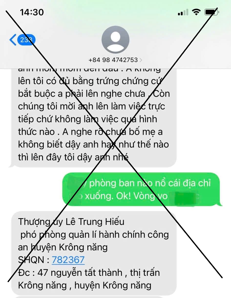 Điển hình là vụ việc anh N.H.H, sinh năm 1992, trú tại thị trấn Krông Năng, huyện Krông Năng, tỉnh Đắk Lắk nhận được cuộc gọi điện thoại của đối tượng giả danh là cán bộ Đội Cảnh sát Quản lý hành chính về trật tự xã hội Công an huyện Krông Năng yêu cầu anh H phải đến trụ sở Công an huyện để làm việc, hướng dẫn anh H tải App qua đường link chứa mã độc mà đối tượng cung cấp để cài đặt, cung cấp mã OTP, thông tin CCCD… cho đối tượng. Do cảnh giác nên anh H không làm theo mà đến Công an huyện để trình báo.