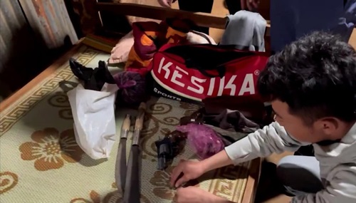 Vào thời điểm bắt giữ, các trinh sát thu giữ tại hiện trường và trên người đối tượng Lê Văn Thiện cất giữ 2 con dao cùng một khẩu súng Rulo, 4 viên đạn.