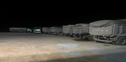 Các xe ô tô tải vận chuyển cát trái phép bị lực lượng Công an huyện phát hiện, xử lý