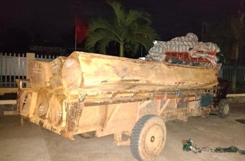 Khi lực lượng Công an kiểm tra, 02 đối tượng bỏ chạy và để lại xe máy kéo cùng lâm sản