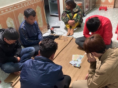 Các đối tượng bị bắt quả tang đang thực hiện hành vi đánh bạc tại nhà bà V.T.L