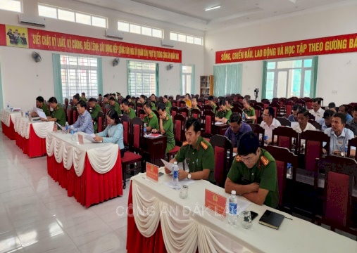 Đến dự và chỉ đạo Hội nghị có đồng chí H’Kim Rơ Chăm - Phó Bí thư Thường trực Huyện ủy; đồng chí Nguyễn Ngọc Pháp – Huyện ủy viên, Phó Chủ tịch UBND huyện, tham dự Hội nghị có đại diện lãnh đạo UBND các xã, thị trấn trên địa bàn huyện. Đồng chí Thượng tá Lê Chí Đông - Ủy viên Ban Thường vụ Huyện ủy, Bí thư Đảng ủy, Trưởng Công an huyện chủ trì Hội nghị, tham dự Hội nghị có các đồng chí trong Đảng ủy, lãnh đạo Công an huyện, Chỉ huy các Đội nghiệp vụ, Công an xã, thị trấn và toàn thể CBCS Công an huyện.