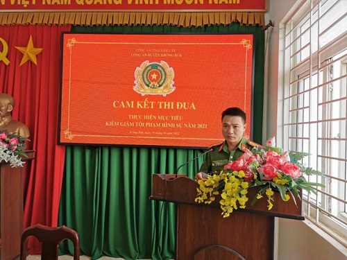 Cũng tại Hội nghị này, Công an huyện đã tổ chức ký Cam kết thi đua thực hiện mục tiêu kiềm giảm tội phạm hình sự năm 2021. Nội dung cam kết nêu rõ mục tiêu kiềm giảm từ 10% trở lên số vụ phạm pháp hình sự trên địa bàn so với năm 2020 và tập trung triển khai đồng bộ, quyết liệt các biện pháp công tác nghiệp vụ, đẩy mạnh các biện pháp phòng ngừa hạn chế nguyên nhân, điều kiện phát sinh tội phạm.