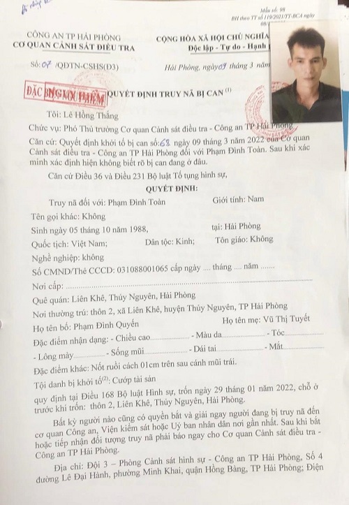 Quyết đinh truy nã đối tượng Phạm Đình Toàn