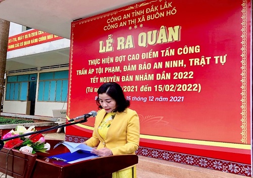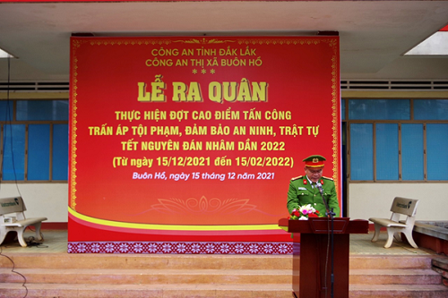 Sáng ngày 15/12/2021, Công an thị xã Buôn Hồ tổ chức Lễ ra quân thực hiện cao điểm tấn công, trấn áp tội phạm, bảo đảm an ninh, trật tự Tết Nguyên đán Nhâm Dần 2022.