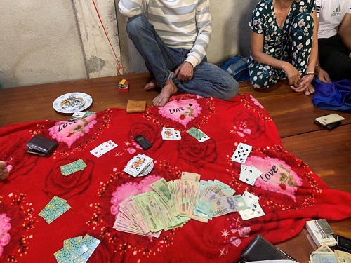Các đối tượng đánh bạc bị lực lượng Công an phát hiện, bắt giữ cùng tang vật