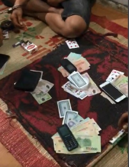 Các đối tượng đánh bạc bị lực lượng Công an phát hiện, bắt giữ cùng tang vật