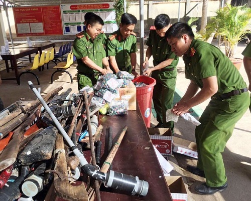 Lực lượng Công an tiến hành xử lý, tiêu hủy vũ khí, vật liệu nổ và công cụ hỗ trợ thu giữ được
