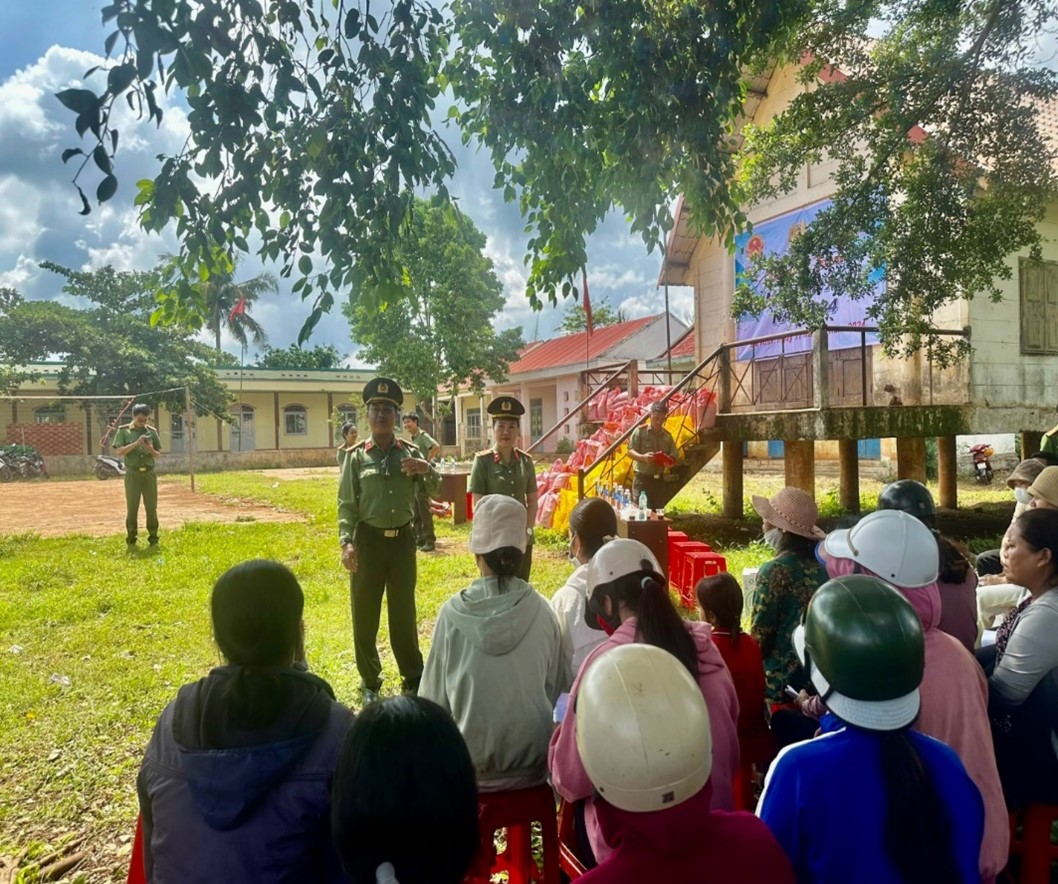 Đ/c Thượng tá Y Thu ÊBan (Phó Trưởng Công an huyện Cư Kuin) và Đ/c Thượng tá Lữ Thị Anh Đào (Phó Trưởng Phòng An ninh nội địa) phát động quần chúng tham gia phong trào toàn dân bảo vệ an ninh tổ quốc, xây dựng khối đại đoàn kết dân tộc