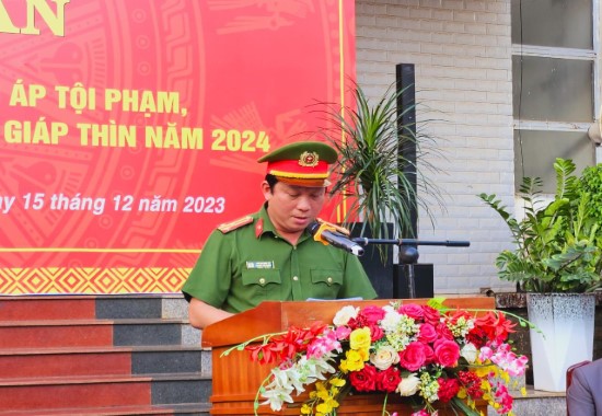 Tiếp thu ý kiến chỉ đạo của đồng chí Chủ tịch UBND huyện, để thể hiện tinh thần quyết tâm cao của các lực lượng ra quân thực hiện đợt cao điểm tấn công trấn áp tội phạm, đồng chí Thượng tá Phùng Minh Trí – Trưởng Công an huyện đã thay mặt cho các cơ quan, đơn vị phát biểu nhận nhiệm vụ, thể hiện quyết tâm thực hiện đợt cao điểm. Đảng ủy, lãnh đạo Công an huyện sẽ lãnh đạo, chỉ đạo triển khai đồng bộ các biện pháp đảm bảo ANTT trước, trong và sau dịp Tết Nguyên đán; tập trung tấn công trấn áp các loại tội phạm và các hành vi vi phạm pháp luật thường nổi lên vào dịp Tết, như cướp, cướp giật tài sản, trộm cắp tài sản, cố ý gây thương tích, gây rối trật tự công cộng, tội phạm liên quan đến hoạt động “tín dụng đen”, các hành vi buôn lậu, gian lận thương mại, vận chuyển buôn bán hàng cấm, hàng giả; sản xuất, tàng trữ, vận chuyển, mua bán, sử dụng pháo nổ trái phép; vi phạm pháp luật về vệ sinh, an toàn thực phẩm…; chủ động triển khai các biện pháp phòng ngừa, kết hợp với tuần tra vũ trang tại các địa bàn trọng điểm; nâng cao hiệu quả quản lý các hệ loại đối tượng nhằm tiếp tục kiềm giảm tội phạm; nâng cao hiệu lực công tác quản lý nhà nước về ANTT, huy động tối đa lực lượng, phương tiện tuần tra, kiểm soát đảm bảo TTATGT, kiềm giảm tai nạn giao thông trên cả 3 tiêu chí về số vụ, số người chết, số người bị thương… nhằm góp phần thực hiện mục tiêu “bảo đảm an ninh, trật tự, giữ vững trật tự, kỷ cương, phục vụ hiệu quả nhiệm vụ phát triển kinh tế - xã hội, bảo đảm quốc phòng-an ninh trên địa bàn huyện”, tạo môi trường ổn định để các tầng lớp Nhân dân vui xuân, đón Tết bình yên, hạnh phúc.