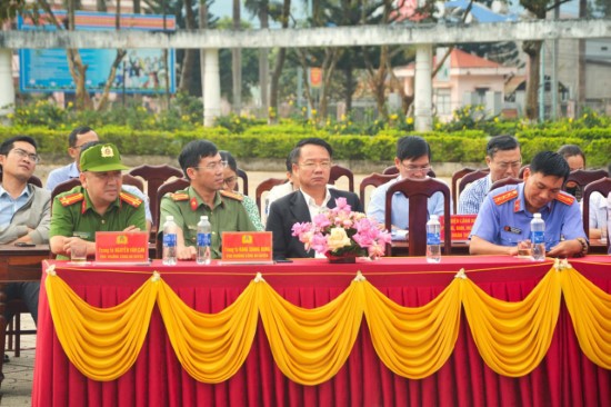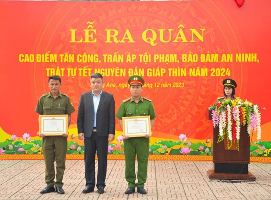 Tại buổi lễ ra quân, Chủ tịch UBND huyện đã biểu dương, khen thưởng đột xuất đối với 02 cá nhân đã có thành tích xuất sắc trong điều tra làm rõ vụ trộm cắp cà phê trên địa bàn xã Quảng Điền.