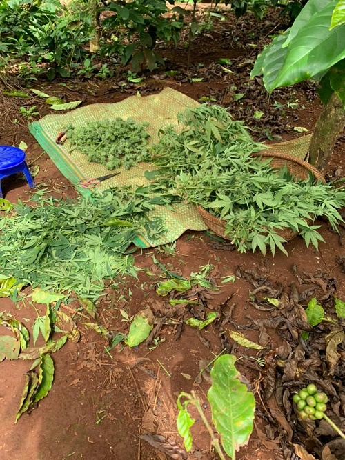 Quá trình kiểm tra đã phát hiện 97 cây cần sa được trồng trong rẫy. Bước đầu, hộ gia đình này khai nhận trồng cần sa để lấy lá cho gà, heo và dê ăn để giúp tăng trưởng và phòng tránh dịch bệnh.