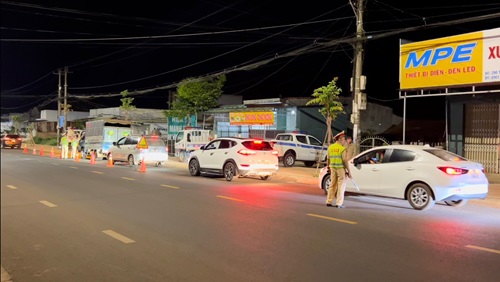 Lực lượng CSGT Công an thị xã kiểm tra nồng độ cồn người điều khiển phương tiện tham gia giao thông.