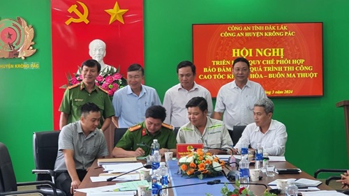 Ngày 08/3/2024, tại Công an huyện Krông Pắc, Công an huyện và Ban quản lý dự án cao tốc Khánh Hòa - Buôn Ma Thuột đoạn qua huyện Krông Pắc cùng UBND các xã có cao tốc đi qua đã ký quy chế phối hợp đảm bảo an ninh trật tự, trật tự công cộng, phục vụ quá trình thi công dự án tuyến cao tốc này.