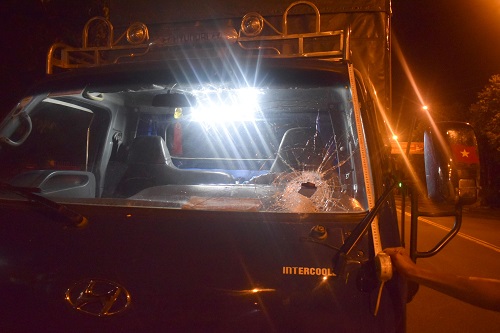 Công an huyện Buôn Đôn vùa làm rõ một nhóm thanh niên ban đêm ném đá gây vỡ kính xe tải.