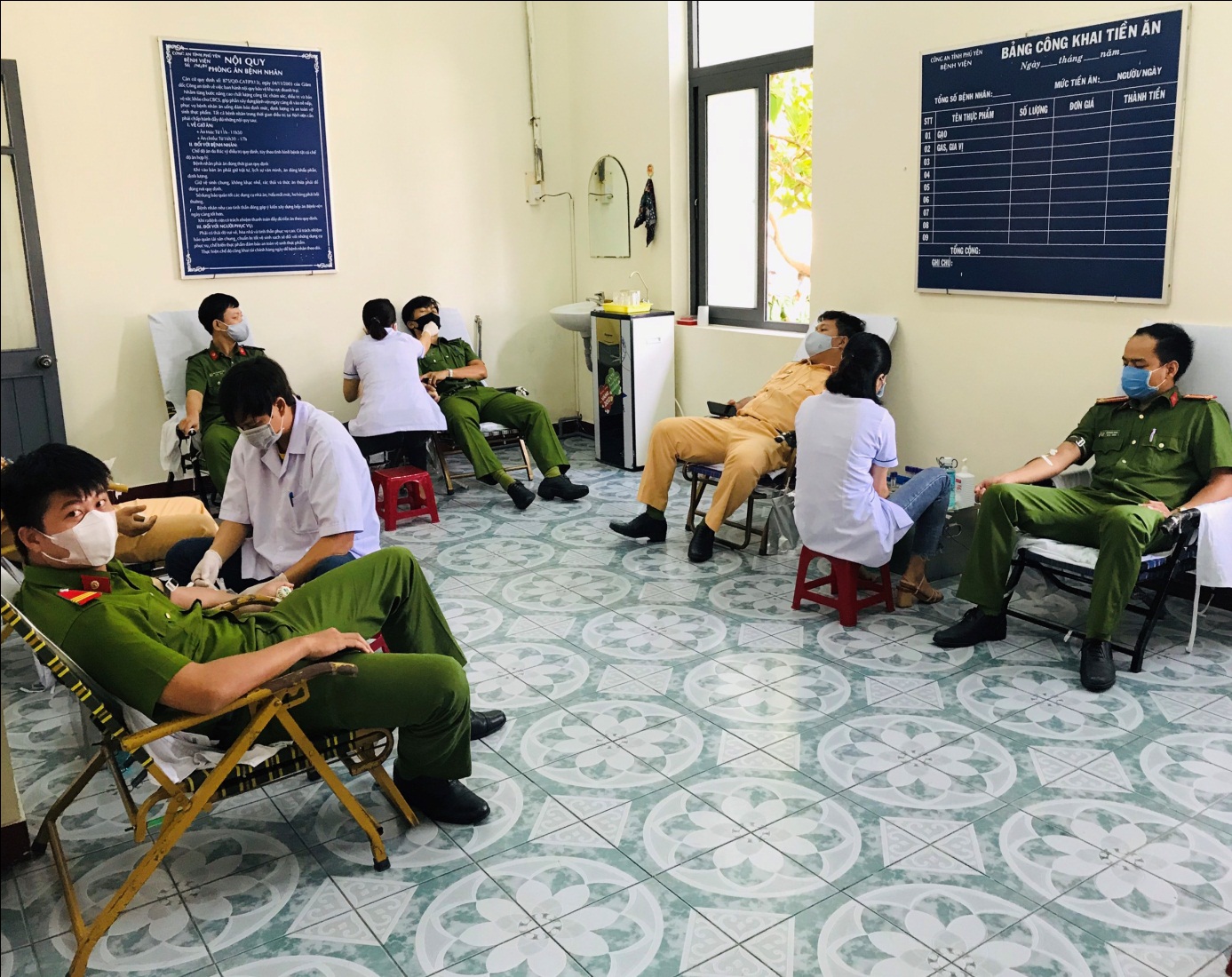 Đảng ủy, lãnh đạo Công an tỉnh và cấp ủy, lãnh đạo Công an các đơn vị, địa phương xác định việc kêu gọi, tuyên truyền, vận động cán bộ, chiến sĩ tham gia hiến máu tình nguyện là nhiệm vụ trọng tâm và hết sức cấp bách. Hưởng ứng lời kêu gọi, toàn thể cán bộ, chiến sĩ Công an Phú Yên vừa triển khai thực hiện nghiêm túc các mệnh lệnh, kế hoạch công tác bảo đảm an ninh, trật tự, đấu tranh trấn áp tội phạm và phòng, chống dịch bệnh COVID-19 trên địa bàn; đồng thời hăng hái tình nguyện tham gia hiến máu. Ảnh: Cán bộ, chiến sĩ CAPY tham gia hiến máu tình nguyện (nguồn: BVCAT)