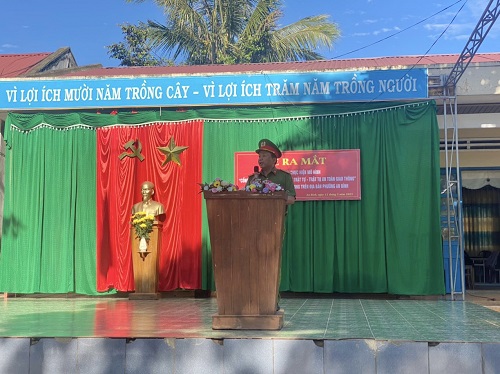 Đồng chí Đại úy Nguyễn Mạnh Thảo báo cáo tình hình ANTT tại trường Quang trung và sự cần thiết xây dựng mô hình