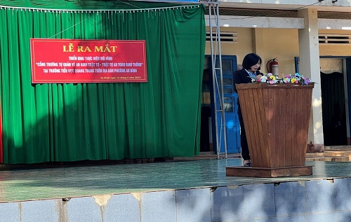 Tại buổi lễ, Đồng chí Đại úy Nguyễn Mạnh Thảo – Trưởng Công an phường An Bình đã thông qua báo cáo đánh giá tình hình an ninh trật tự tại trường Tiểu học Quang Trung và sự cần thiết của việc xây dựng mô hình. Thông qua các quyết định thành lập mô hình và ban chỉ đạo xây dựng mô hình.