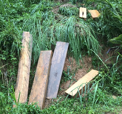 Gỗ được cất giấu ở ngoài xưởng của ông Lâm Hùng