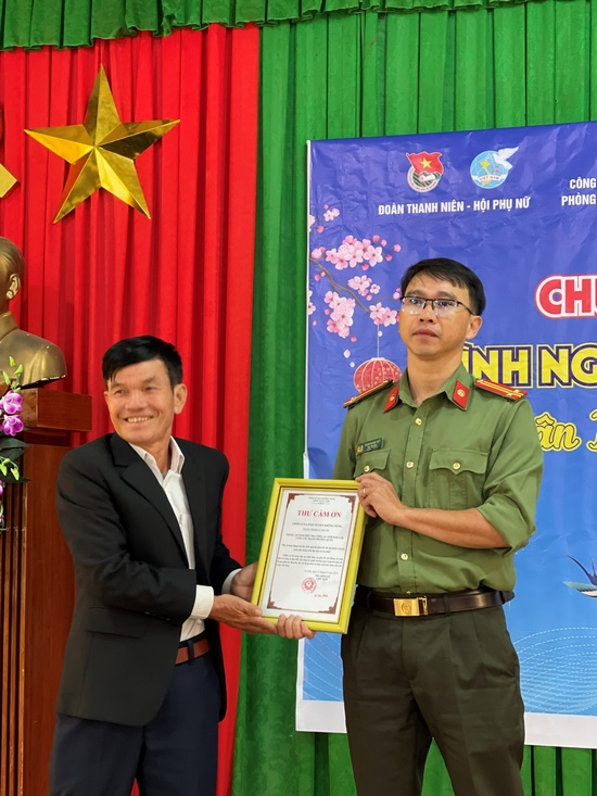 Đại diện chính quyền xã Ea Đăh, huyện Krông Năng trao Thư Cảm ơn cho Phòng An ninh điều tra Công an tỉnh Đắk Lắk