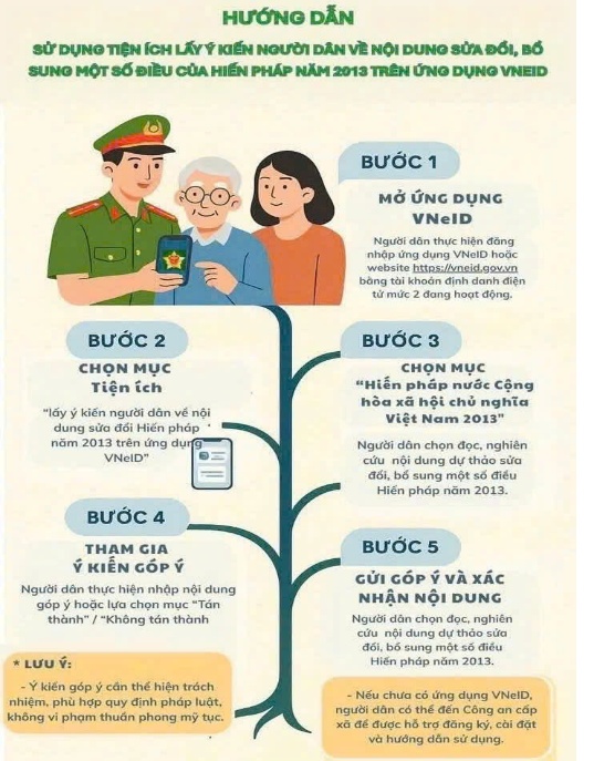 Thực hiện Kế hoạch số 95/KH-UBND ngày 09/5/2025 của UBND tỉnh Phú Yên về tổ chức lấy ý kiến Nhân dân, các ngành, các cấp về dự thảo Nghị quyết sửa đổi, bổ sung một số điều của Hiến pháp nước Cộng hòa xã hội chủ nghĩa Việt Nam năm 2013 và Kế hoạch số 176/KH-CAT-PC06, ngày 09/5/2025 của Giám đốc Công an tỉnh về việc tổ chức lấy ý kiến Nhân dân đối với dự thảo sửa đổi, bổ sung Hiến pháp năm 2013 qua ứng dụng VneID. Công an xã Xuân Lãnh đã tham mưu UBND xã chỉ đạo và triển khai quyết liệt các hình thức để tuyên truyền và hướng dẫn người dân tham gia đóng góp ý kiến đối với dự thảo sửa đổi, bổ sung Hiến pháp năm 2013 trên địa bàn xã.