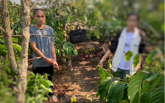 Hình ảnh bị can Trần Văn Chiến đang xác định lại vị trí thực hiện hành vi quan hệ tình dục với Nguyễn Thị Phương Nguyên