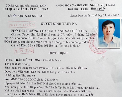 Lệnh truy nã Trần Đức Tường