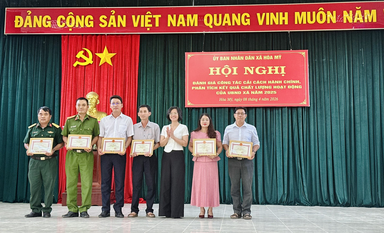 Đáng chú ý, với những kết quả đạt được trong năm 2025, Công an xã Hòa Mỹ đã được Chủ tịch UBND xã tặng Giấy khen vì có thành tích xuất sắc trong công tác cải cách hành chính. Đây là sự ghi nhận kịp thời đối với những nỗ lực, cố gắng của tập thể đơn vị trong việc nâng cao chất lượng phục vụ Nhân dân.