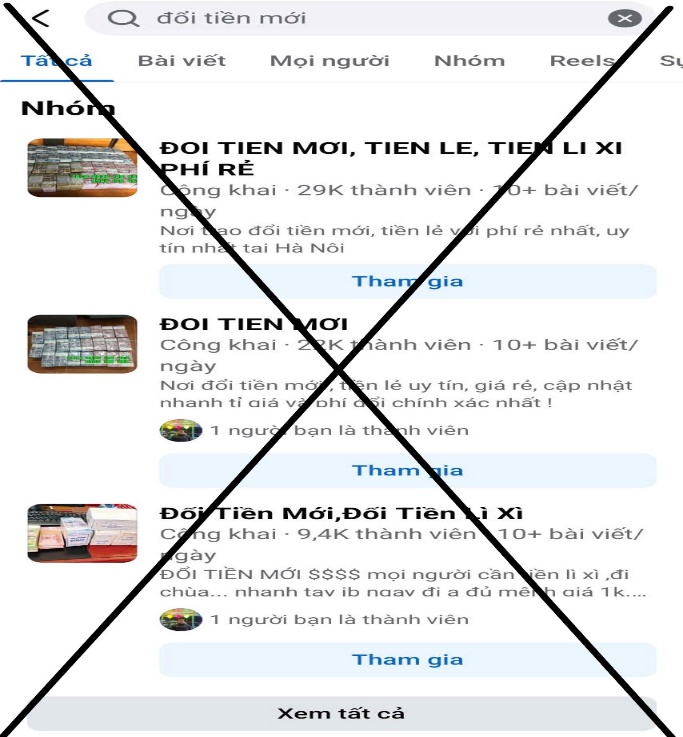 Ngoài ra, những dịch vụ “đổi tiền lẻ”, “tiền mới” trên mạng xã hội lại mang tính rủi ro rất cao. Bởi, các đối tượng có thể lợi dụng nhu cầu của người dân đang cần đổi tiền mới mà có thể sử dụng tiền bất hợp pháp, tiền không rõ nguồn gốc hay thậm chí là tiền giả. Các đối tượng còn sử dụng nhiều thủ đoạn tinh vi để dẫn dụ nạn nhân đổi tiền trực tuyến nhằm mục đích lừa đảo chiếm đoạt tài sản; không ít trường hợp người dân chuyển khoản xong thì chủ tài khoản, trang mạng xã hội đã chặn liên lạc, chiếm đoạt khoản tiền đã đặt cọc của khách; thậm chí, có trường hợp người đi đổi tiền còn trở thành nạn nhân của hành vi “cướp tài sản”. Mới đây nhất, vào ngày 09/1/2025, Cơ quan Cảnh sát điều tra Công an huyện Ea H’Leo, tỉnh Đắk Lắk đã tạm giữ hình sự 01 đối tượng để điều tra, làm rõ về hành vi “Cướp tài sản”. Theo đó, “đóng vai là người có nhu cầu đổi tiền” với mục đích cướp tài sản; đối tượng đã sử dụng tài khoản mạng xã hội Facebook để liên lạc với tài khoản của nạn nhân và đặt đổi 20 triệu đồng tiền mới. Sau khi nạn nhân đến địa điểm được hẹn trước, đối tượng đã đổi địa điểm và dẫn dụ nạn nhân đến một địa điểm khác để thực hiện hành vi cướp tài sản là 38 triệu đồng tiền mặt, cùng 01 điện thoại di động.