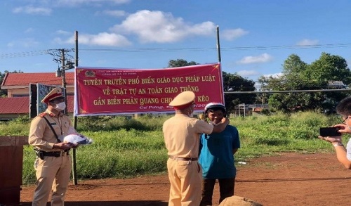 Tính tới thời điểm hiện tại, Công an huyện đã tổ chức 03 buổi tuyên truyền Luật Giao thông đường bộ cho các trường học trên địa bàn huyện, thu hút hơn 1.240 lượt giáo viên, học sinh và công nhân viên tham dự và 12 buổi tuyên truyền phổ biến Luật giao thông đường bộ và các quy tắc tham gia giao thông cho người dân trên địa bàn huyện với hơn 6.650 lượt người tham gia. Qua đó, Công an huyện đã phát hơn 14.500 tờ rơi tuyên truyền về Luật giao thông đường bộ, tặng hơn 700 mũ bảo hiểm và hơn 1.000 cái khẩu trang.