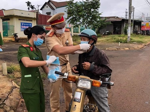 Công an huyện tổ chức phát khẩu trang cho nhân dân trên địa bàn