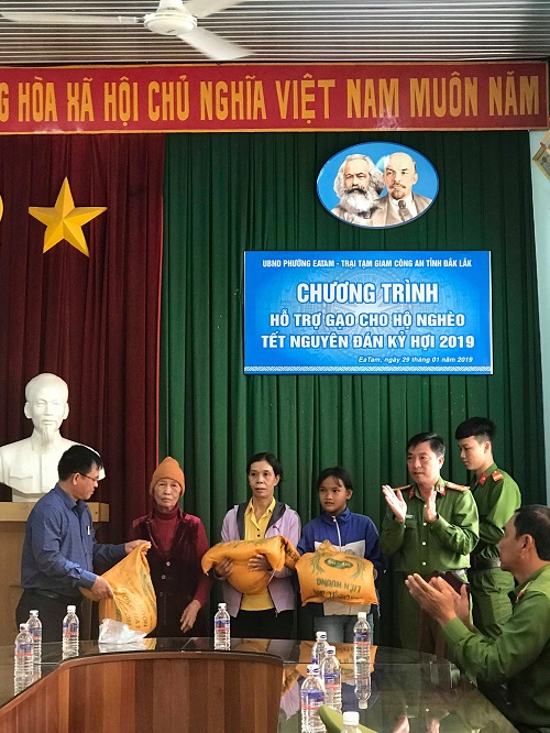 Hàng năm, cứ mỗi đợt Tết đến xuân về, để tăng cường mối quan hệ đoàn kết, gắn bó với Nhân dân địa bàn nơi đơn vị đóng quân thuộc phường Ea Tam, Tp. Buôn Ma Thuột, sáng ngày 29/01/2019, Trại tạm giam tổ chức chương trình cấp phát 67 suất gạo cho hộ nghèo trên địa bàn phường Ea Tam mỗi suất 15 kg gạo. Thông qua hoạt động này, đơn vị kết hợp vận động, tuyên truyền cho Nhân dân nêu cao tinh thần cảnh giác, tích cực phát hiện tố giác tội phạm, vi phạm pháp luật, góp phần giữ vững ổn định an ninh chính trị và trật tự, an toàn xã hội dịp Tết Nguyên đán Kỷ Hợi năm 2019. Đây là hoạt động thường niên hàng năm của cán bộ, chiến sĩ Trại tạm giam để chung tay chia sẻ với những hoàn cảnh khó khăn trong xã hội, đặc biệt là Nhân dân địa bàn nơi đơn vị đóng quân góp phần giúp người dân yên tâm đón Tết cổ truyền của dân tộc trong không khí đầm ấm, vui tươi, hạnh phúc.