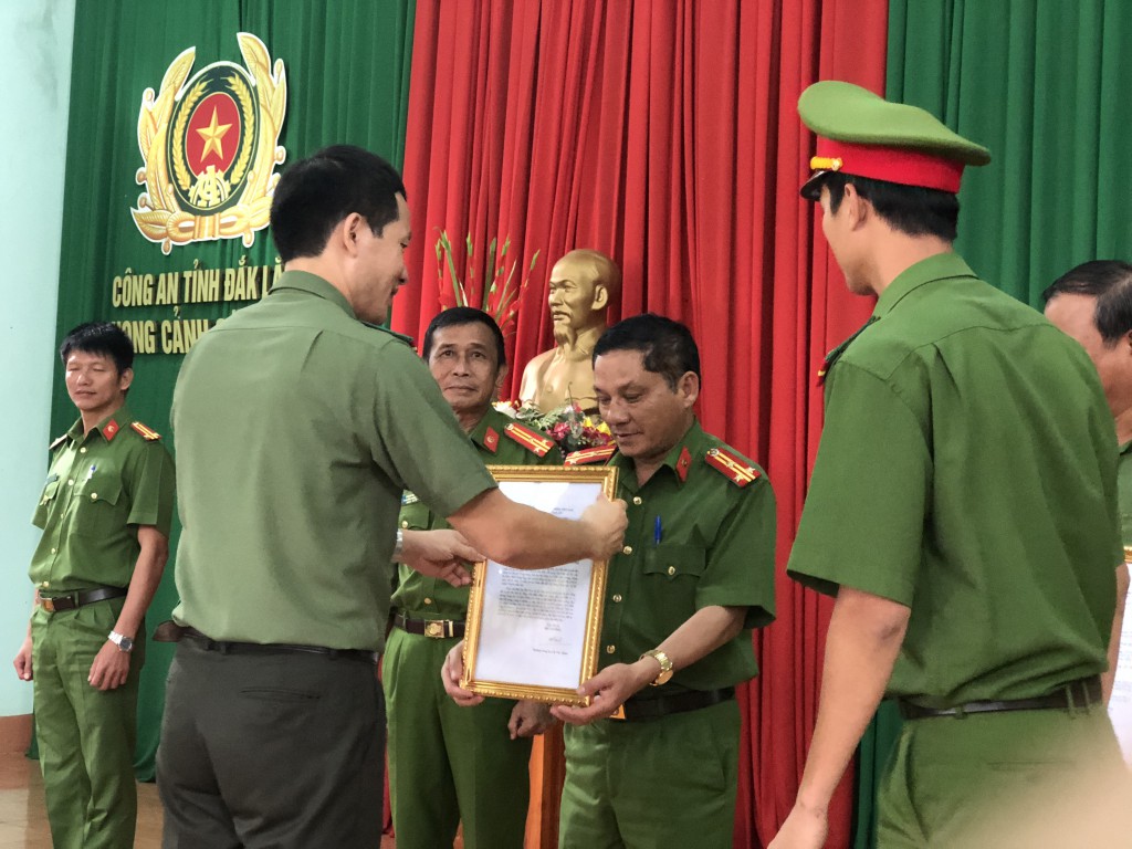 Giám đốc Công an tỉnh Đắk Lắk vừa đến trao Thư khen của Bộ Công an cho phòng Cảnh sát cơ động và Công an TP. Buôn Ma Thuột đã mưu trí, dũng cảm trong vụ đánh bắt tên ngáo đá có hung khí nguy hiểm, giải cứu an toàn cho người bị nạn.