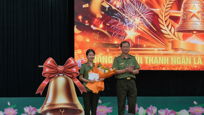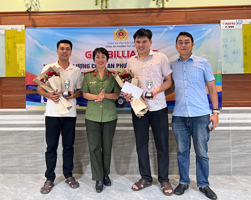 Trung tá Hoàng Thị Thu Hoài – Phó Bí thư Đảng ủy, Phó Trưởng Công an phường trao Giải Nhất cho các cơ thủ