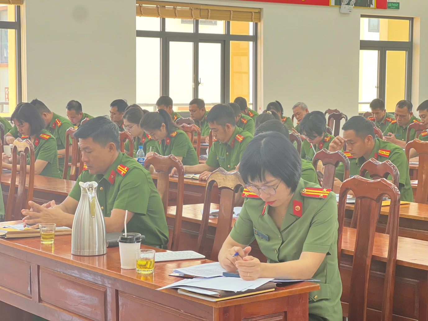 Quang cảnh Hội nghị sinh hoạt chuyên đề về giải pháp nâng cao chất lượng, hiệu quả công tác nghiệp vụ cơ bản của lực lượng Cảnh sát Công an phường Buôn Hồ