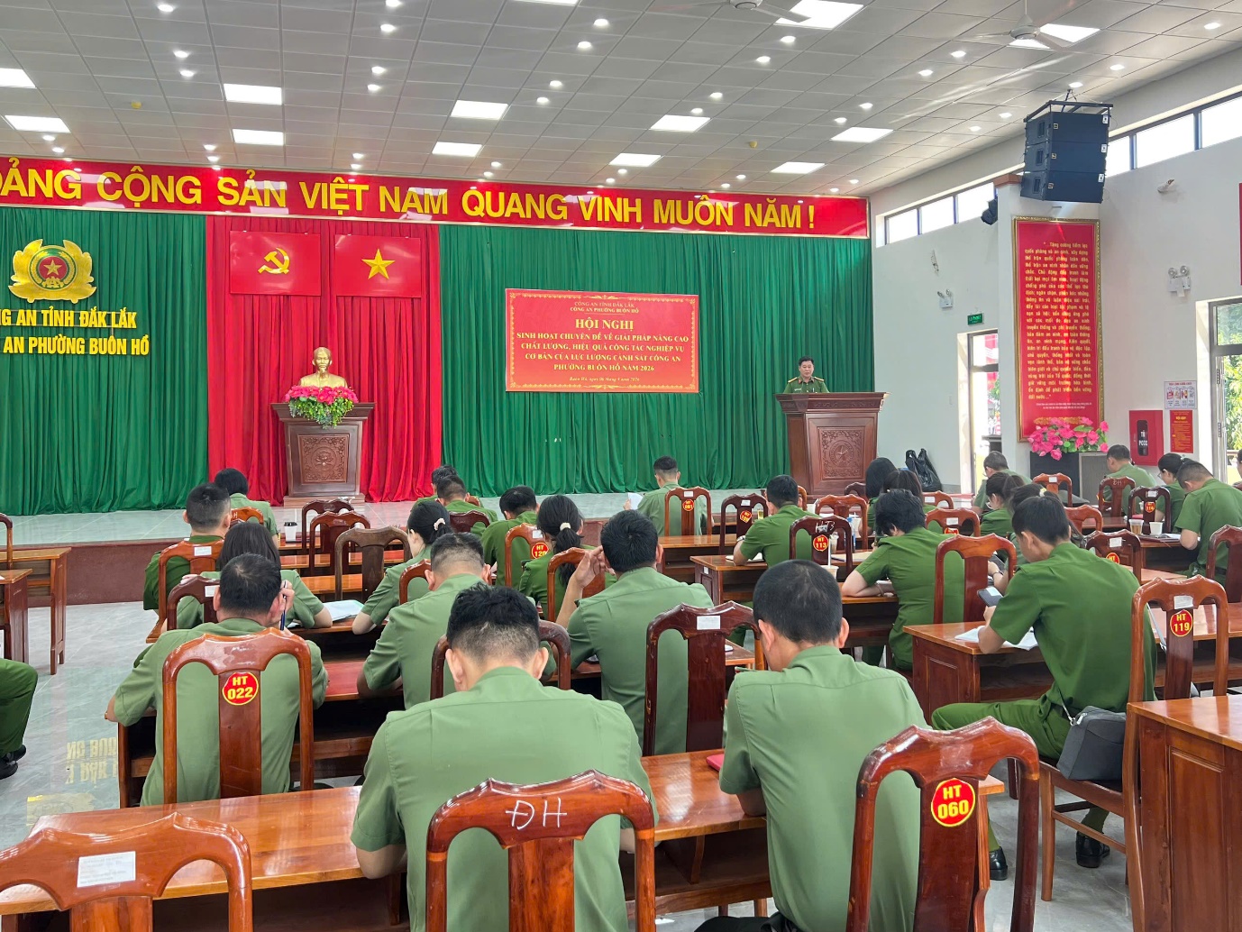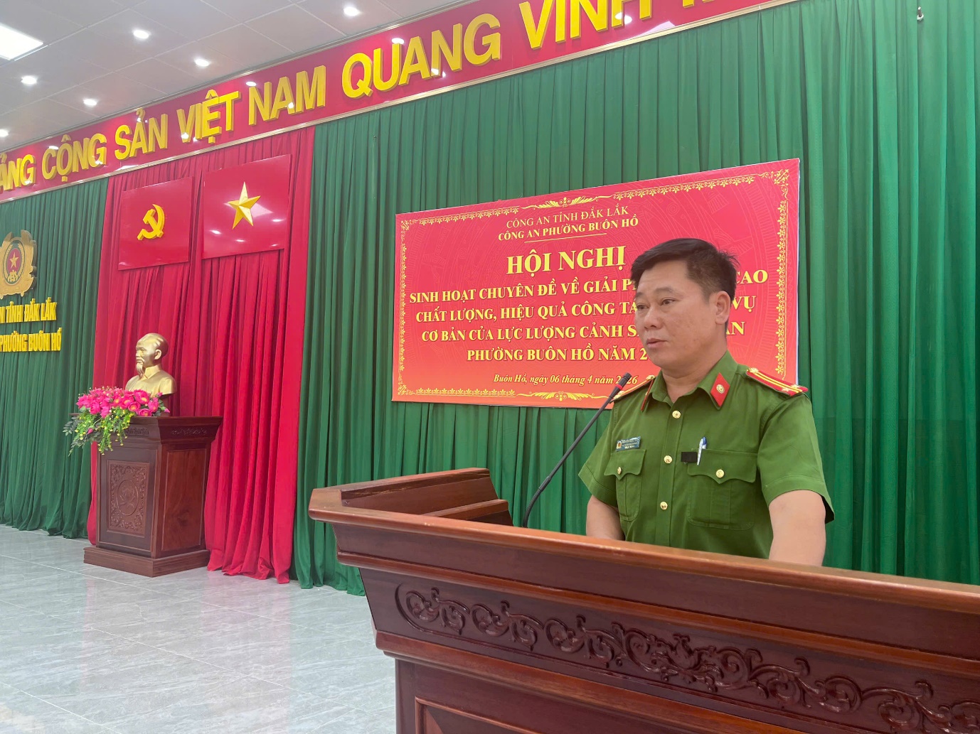 Sáng ngày 06/4/2026, Công an phường Buôn Hồ đã tổ chức Hội nghị sinh hoạt chuyên đề nhằm đề ra các giải pháp nâng cao chất lượng, hiệu quả công tác nghiệp vụ cơ bản của lực lượng Cảnh sát Công an phường.
