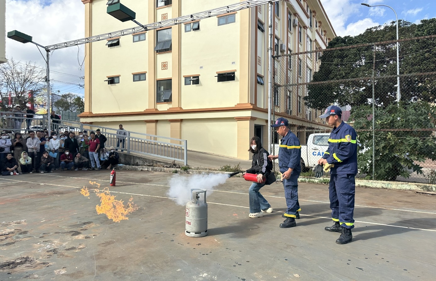 Tại buổi huấn luyện, các học viên được cán bộ Công an phường Buôn Hồ và Đội PCCC và CNCH khu vực 2 truyền đạt những nội dung cơ bản và thiết thực, tập trung vào các quy định mới của pháp luật như Luật PCCC và CNCH năm 2024, Nghị định 105/2025/NĐ-CP ngày 15/5/2025 của Chính phủ quy định chi tiết một số điều và biện pháp thi hành Luật PCCC và CNCH, Nghị định 106/2025/NĐ-CP ngày 15/5/2025 của Chính phủ quy định xử phạt vi phạm hành chính trong lĩnh vực PCCC và CNCH, Thông tư 36/2025/TT-BCA ngày 15/5/2025 của Bộ Công an quy định chi tiết một số điều của Luật PCCC và CNCH và Nghị định 105/2025/NĐ-CP; trách nhiệm của người đứng đầu cơ sở trong công tác bảo đảm an toàn PCCC; kiến thức nhận biết các nguy cơ gây cháy, nổ thường gặp tại cơ sở; biện pháp phòng ngừa, xử lý tình huống khi xảy ra cháy, nổ, sự cố, tai nạn. Bên cạnh đó, học viên còn được hướng dẫn thực hành sử dụng các phương tiện chữa cháy ban đầu, kỹ năng thoát nạn, cứu người và bảo đảm an toàn cho lực lượng tham gia chữa cháy tại chỗ.