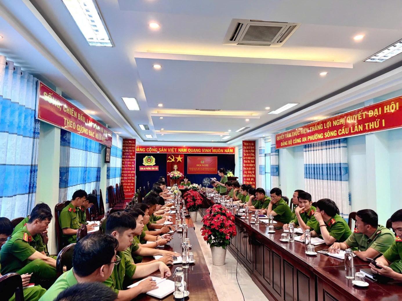 Sáng ngày 01/4/2026, Công an phường Sông Cầu đã tổ chức Hội nghị quán triệt, phổ biến các quy định của pháp luật về thực hiện công tác bảo vệ bí mật nhà nước trong lực lượng Công an phường. Đồng chí Thượng tá Ngô Thị Hồng Thắm, Trưởng Công an phường chủ trì Hội nghị; tham dự Hội nghị có các đồng chí trong ban chỉ huy và toàn thể cán bộ Công an phường.