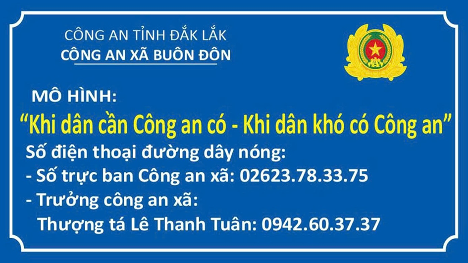Xuất phát từ yêu cầu thực tiễn tình hình an ninh, trật tự trên địa bàn và nhu cầu, nguyện vọng chính đáng của Nhân dân, Công an xã Buôn Đôn đã tham mưu lãnh đạo Công an tỉnh và cấp ủy, chính quyền địa phương xây dựng và ra mắt mô hình dân vận khéo với chủ đề “Khi dân cần Công an có – Khi dân khó có Công an”.