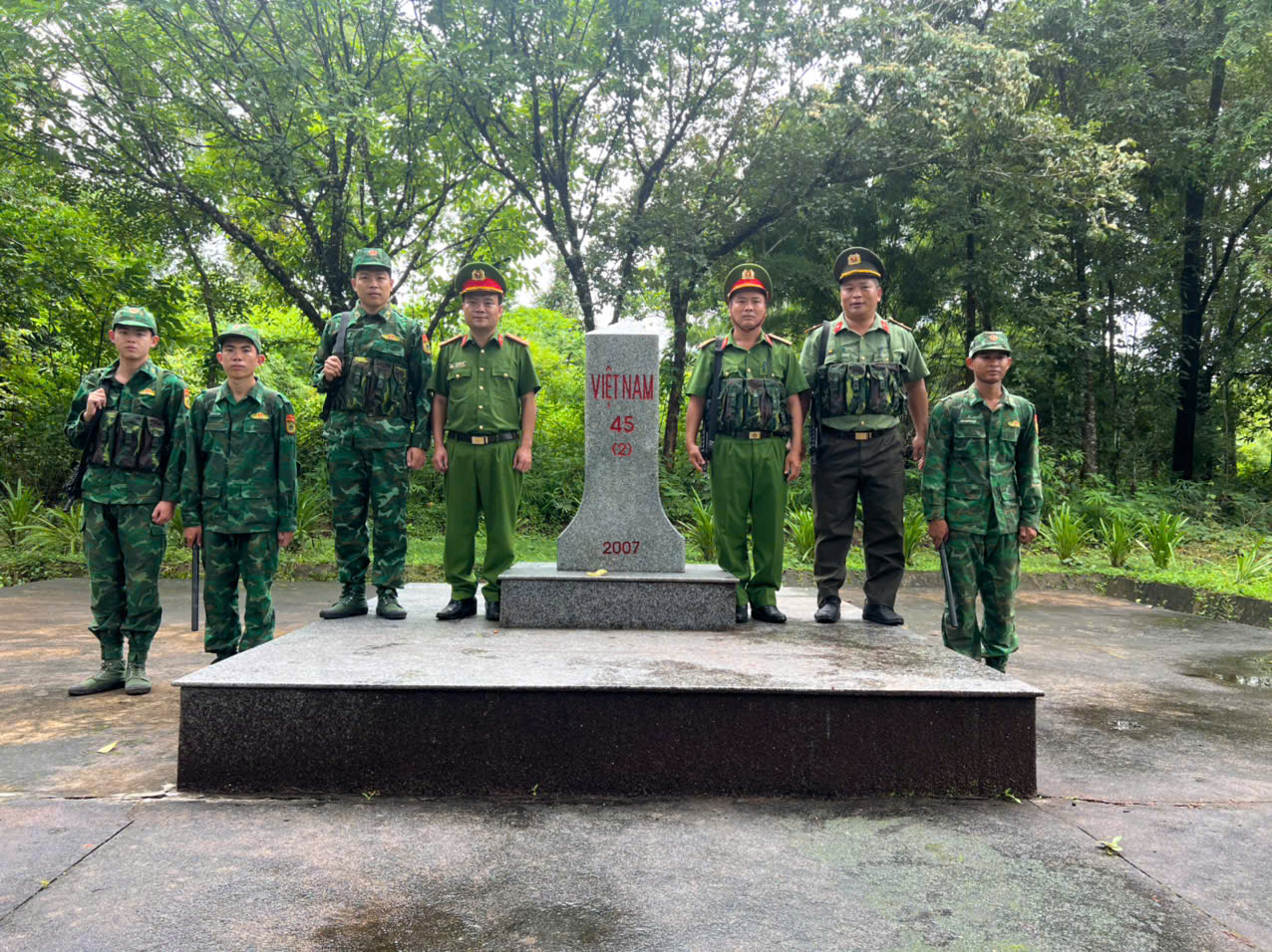 Công an xã phối hợp với Bộ đội Biên phòng tổ chức tuần tra, kiểm soát khu vực cột mốc BG